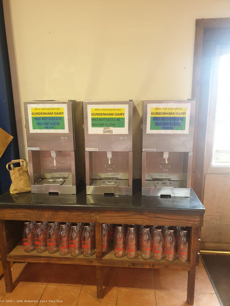 Gundenham Dairy supplies our cartons of fresh dairy milk. In 2019 we introduced refillable glass bottles for our Semi-Skimmed and Whole Milk Dispensers.